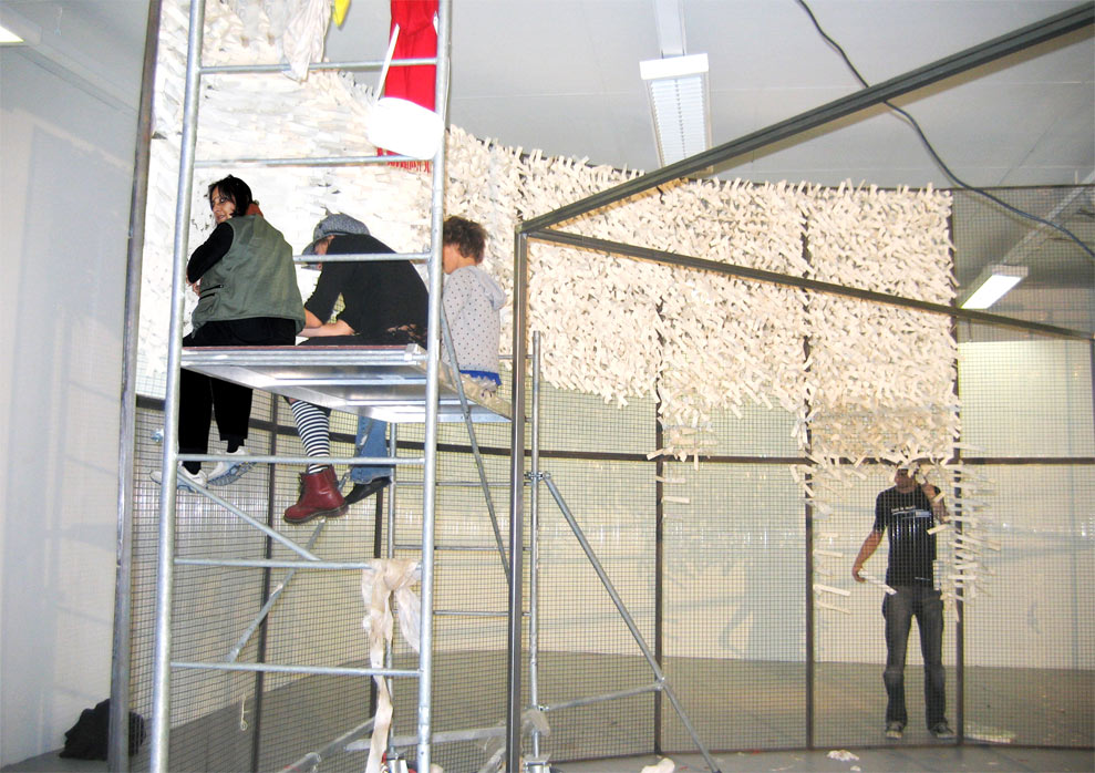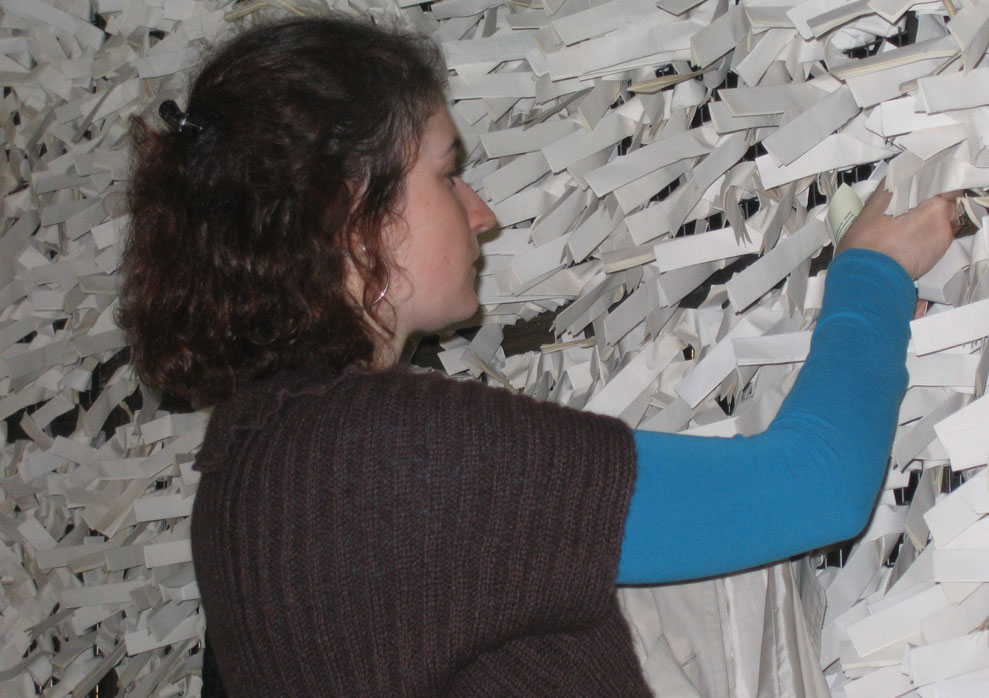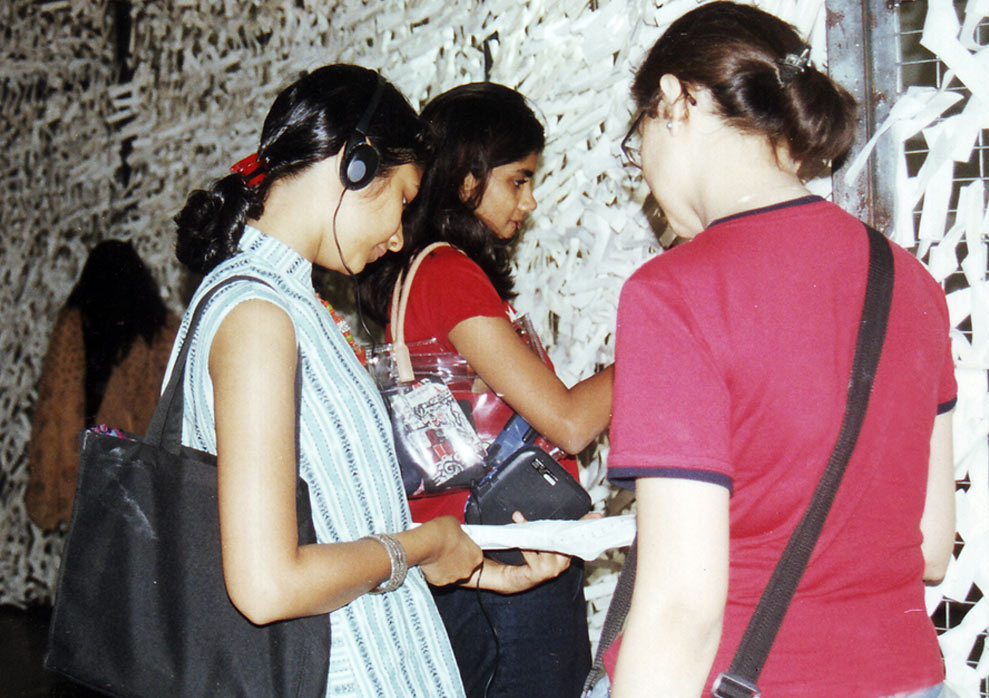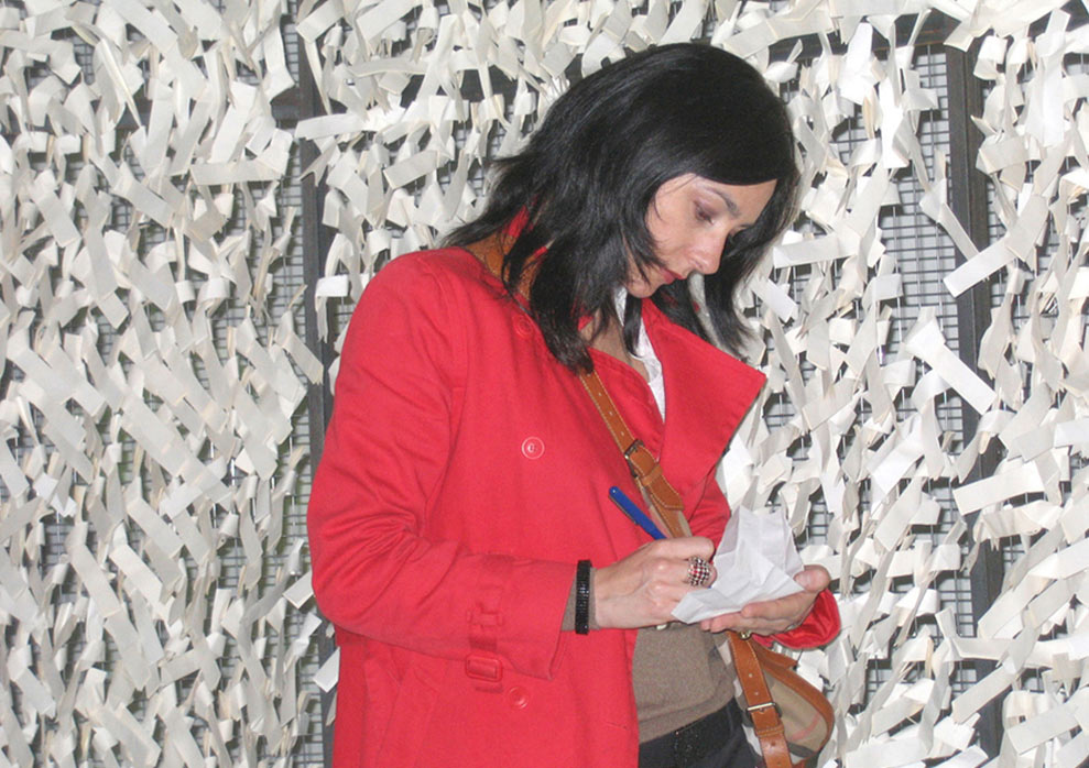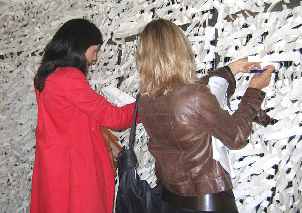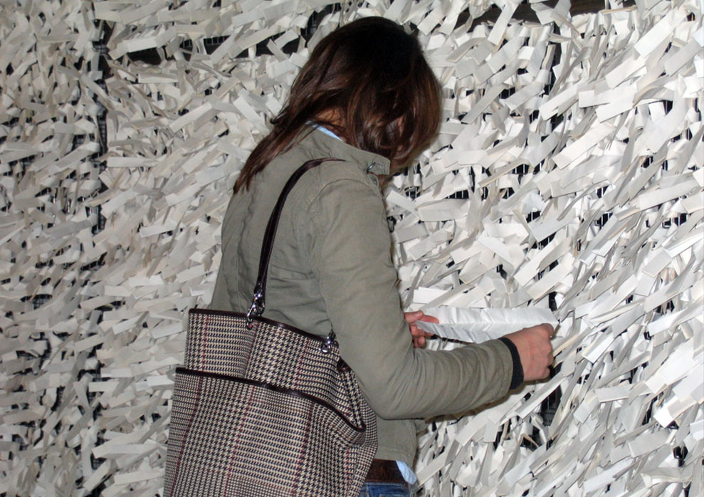 Viewers are free to open the paper ribbons /read them / take them away or put them back with their response/reaction.