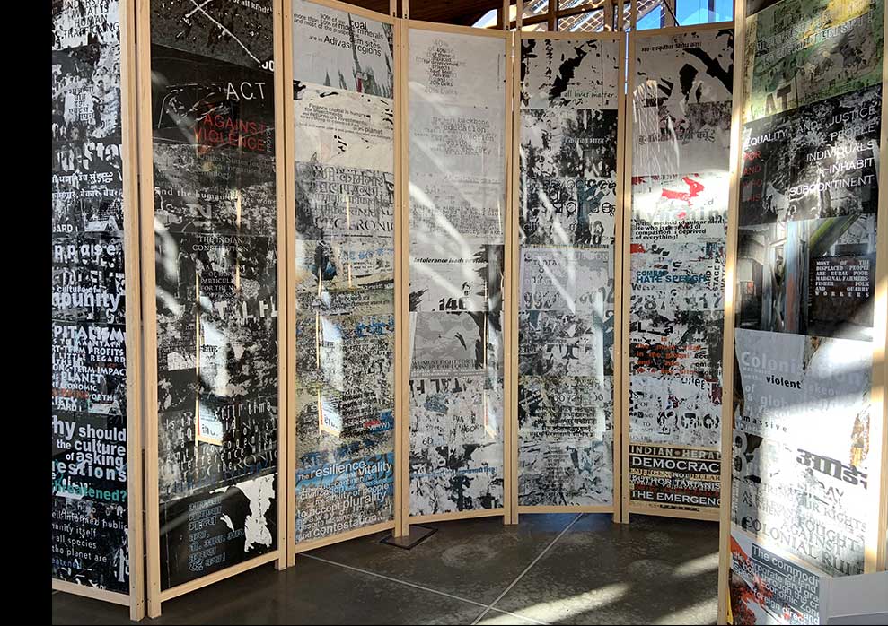 Samakaalik has the complex objective of reconstructing the artist’s journey since her years with the Marxist collective PROYOM: the exhibition opens precisely with a poster from that period in which we can find the premises that would be developed over subsequent decades. Alongside her collaborative work with indigenous artists and members of the communities in Chhattisgarh, Navjot’s research focuses on the mining areas in the south of the district and the central-southern part of the country. Soul Breath Wind investigates the slow violence of the extraction activities: a narration performed thanks to the voice of the local communities. Alongside the video are the small sculptures Patterns Which Connect that embody the importance of the coexistence of species under an ecological threat, an aspect that was already present in 1972, in the cycle of pedagogical drawings Insects Logos – also on display. In the cycle How Perfect Perfection Can Be, the architectural dimension works as a field of investigation into the more obscure aspects of the ideologies of progress. Trail of Impunity tells us about the violent insurrection of the Gujarat communities in 2002, by means of innumerable conversations on the notion of dignity, violence and the possibilities for justice when faced with a system of corrupt politics.