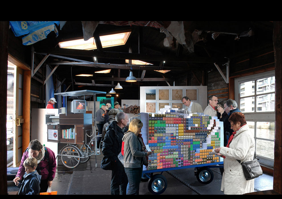 This collaboration between Navjot Altaf (Mumbai) Nina Kalenbach (Hamburg) Till Krause (assistant in production of books) (Hamburg) George Jose (proof reading) (Mumbai) and Imke Faehnders (German translation), a part of Yamuna. Elbe - Contemporary Flows, fluid times project – invites the viewer to reflect on their relationship/association to the city, their perception of the Elbe / Rivers, water and the debate on the issue of continuous development and its impact - by adding /critiquing / erasing the text on and inside the books which could be shared with other participants at different sites.