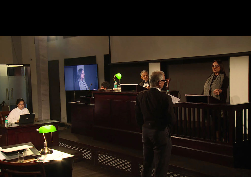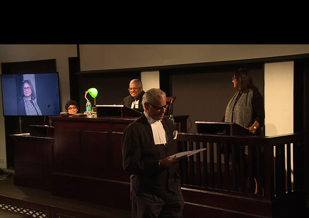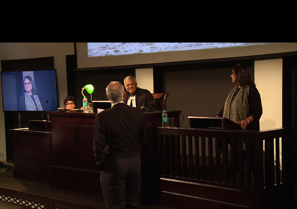This was a collaborative project which included artists Ravi Agarwal, myself, and Sheba Chhachhi, lawyers Anand Grover, Norma Alveres, Justice Yatindra Singh and theatre director Zuleikha Chaudhary. It was supported by Khoj International Artists’ Association and Thyssen Bornemisza Art Contemporary, Vienna. The hearing was staged the first time at the Speakers Hall, Constitution Club of India in New Delhi on 7 April 2017.
