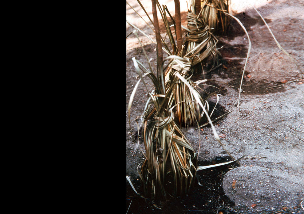 As I went from Bastar to Modinagar, a city of mills and factories with gray concrete structures, bazaars bulging with electronic articles, goods made of plastic, nylon and steel from the factories and the small scale industries gave me a claustrophobic feelings in almost all the trips I made in search of materials made in Modinagar for the work which had not really taken any shape in my mind. Modinagar seemed crowded all the times outside Sikribaug walls where artists were put up in an old Modi house spread over acres of open land. It is during one of the trips to the bazaar with Aas Mohamad an assistant, that I came across office of Forest Department right in the middle of the bazaar street, while walking through the nursery and saplings of all kinds of trees the idea of this project began evolving. The Forest department officials were extremely helpful but were curious to know why I wanted Mahua saplings.